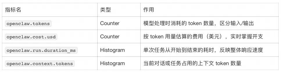 OpenClaw 通过 OTEL 导出的数据覆盖四个观测维度: