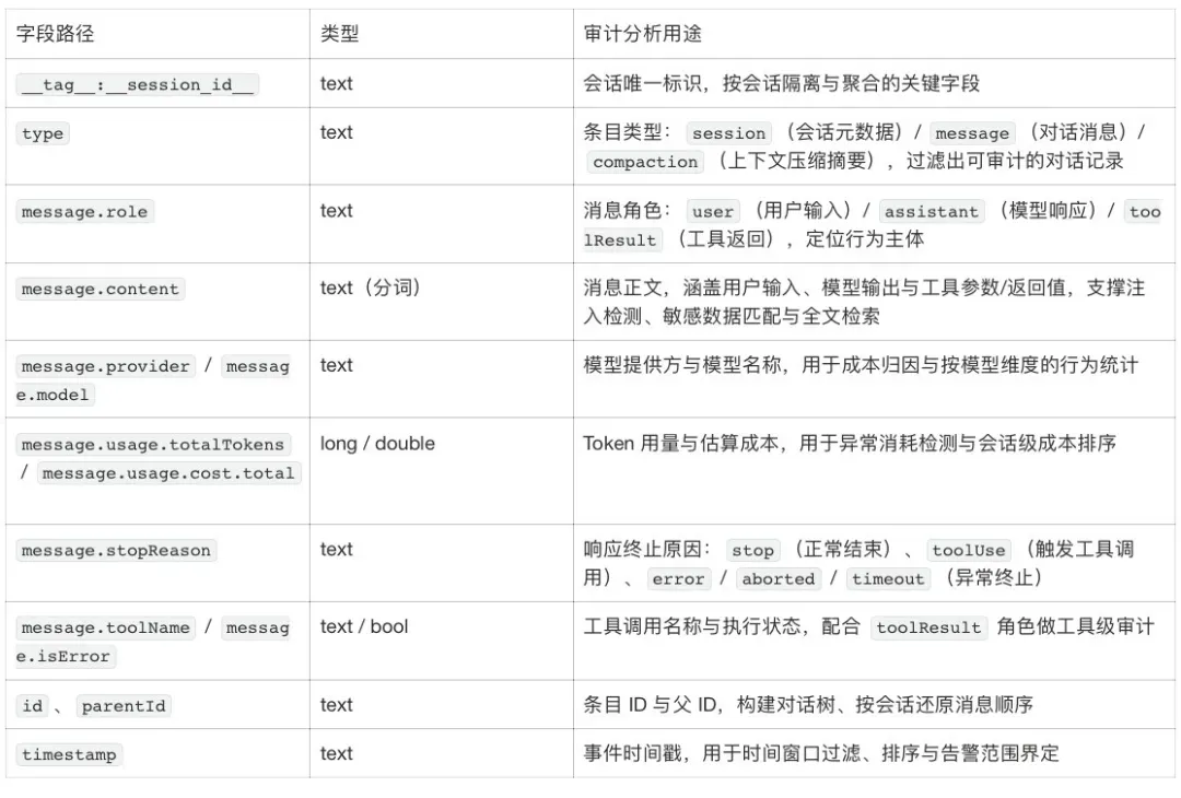 Session 日志是 AI Agent 安全审计的核心数据源。它记录了每一轮对话、每一次工具调用、每一笔 Token 消耗——完整还原"Agent 到底做了什么"。