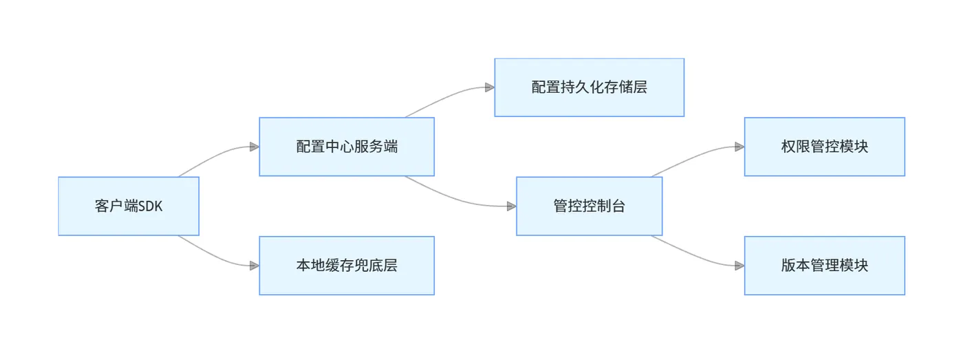 - 管控控制台:提供可视化配置管理界面,支撑配置编辑、版本查看、灰度发布、回滚、审计日志查询等操作