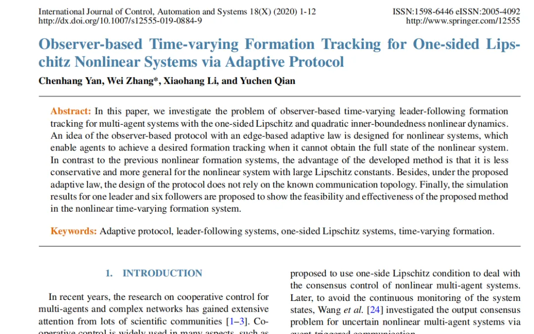 多智能体系统在众多领域有着广泛应用,如智能交通、无人机编队、工业协作机器人等。在这些应用场景中,实现精确的编队跟踪控制至关重要。然而,实际系统往往呈现非线性特性,并且编队跟踪任务可能随时间变化,这就给控制带来了巨大挑战。