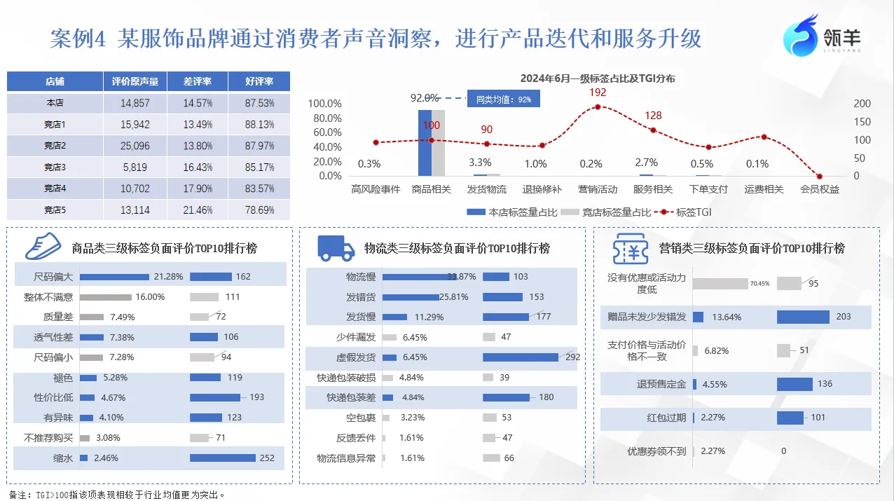 - 行动:品牌方迅速整改面料工艺,并优化物流端。最终,该品牌的差评率显著下降。
