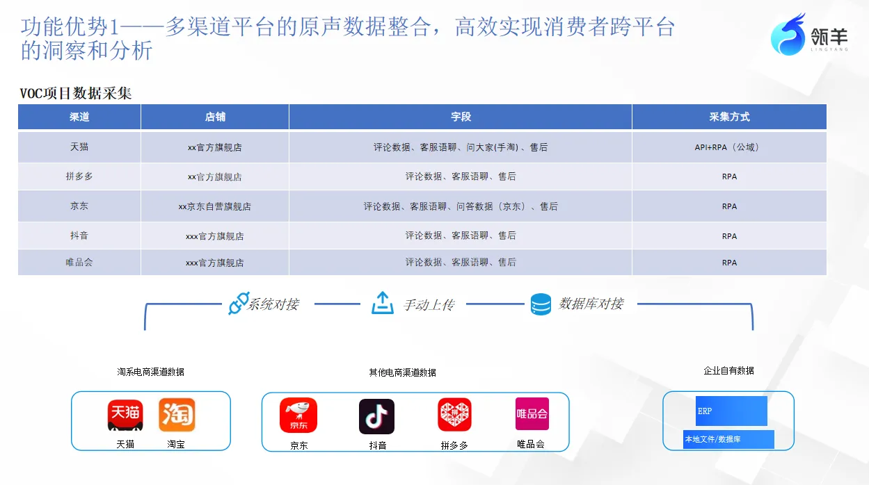 - 电商覆盖:天猫、京东、拼多多、抖音等(支持API+RPA实时采集)。
