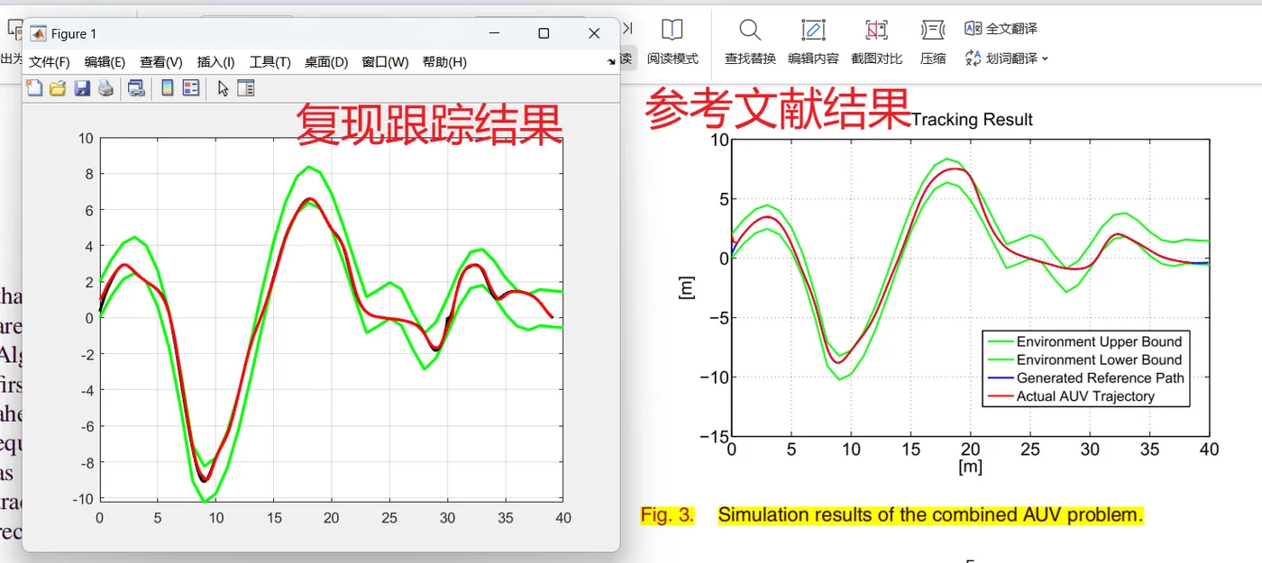 - AUV 路径跟踪中的应用:在 AUV 路径跟踪中,将路径规划模块生成的参考路径作为 MPC 的参考轨迹。MPC 首先利用 AUV 的水动力学模型预测 AUV 在未来多个时刻的位置、速度等状态变量。预测模型考虑了 AUV 的动力学特性以及外界干扰(如水流)的影响。然后,以 AUV 当前实际状态与参考轨迹之间的偏差最小为优化目标,同时考虑 AUV 的控制输入约束(如最大推力、转向角度限制等),利用优化求解器求解出当前时刻的最优控制输入(如螺旋桨转速、舵角等),使 AUV 朝着参考路径调整运动方向和速度,实现路径跟踪。随着 AUV 的运动,不断重复上述预测、优化和控制过程,实时调整控制输入,确保 AUV 始终紧密跟踪参考路径。