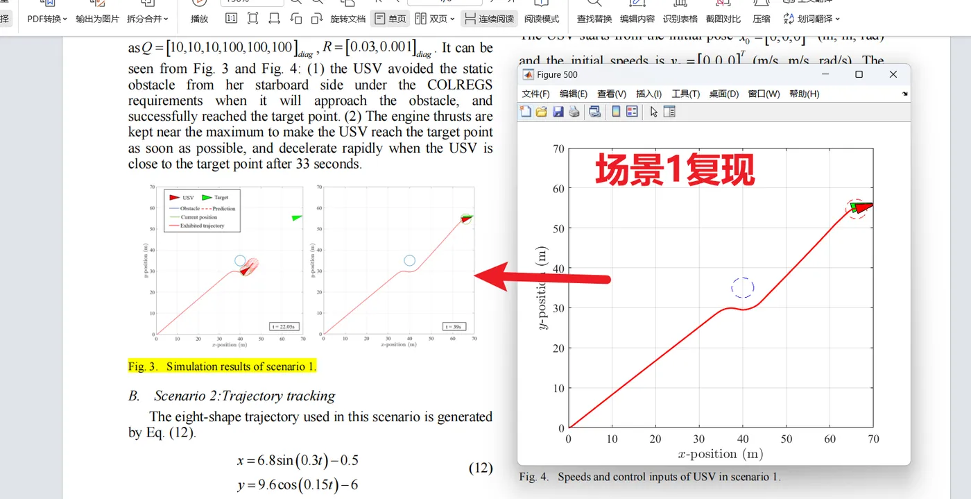 - 多目标平衡:在实现障碍物避碰的同时,NMPC 需要在跟踪参考轨迹和避碰之间进行平衡。这意味着在满足避碰约束的前提下,尽可能地减小跟踪误差,使无人船在避开障碍物后能够尽快回到参考轨迹上继续航行。通过合理调整目标函数中跟踪误差和避碰相关项的权重,NMPC 能够实现这种多目标的平衡,确保无人船在复杂环境下既能够有效避开障碍物,又能够准确跟踪预设轨迹。
