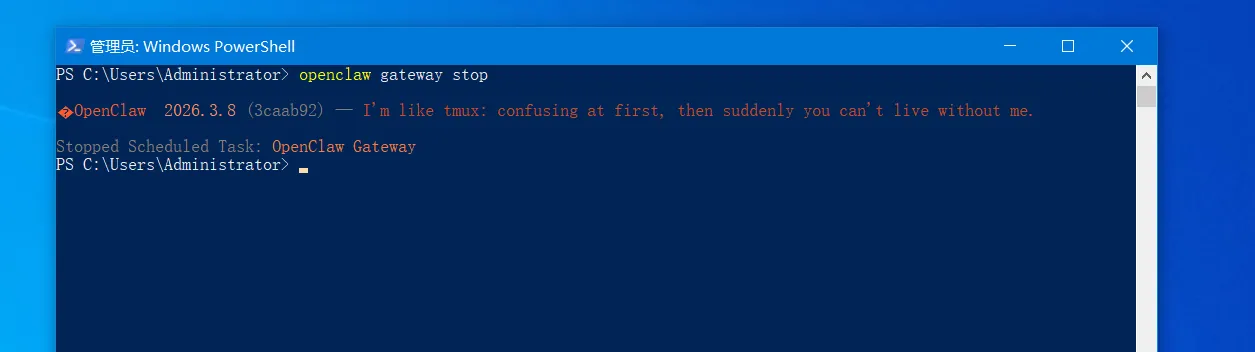 首先停止运行中的网关服务,也就是先终止OpenClaw后台进程,避免卸载时文件被占用!
