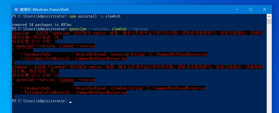 就说明OpenClawClawHub已经彻底卸载干净,没有任何残留~