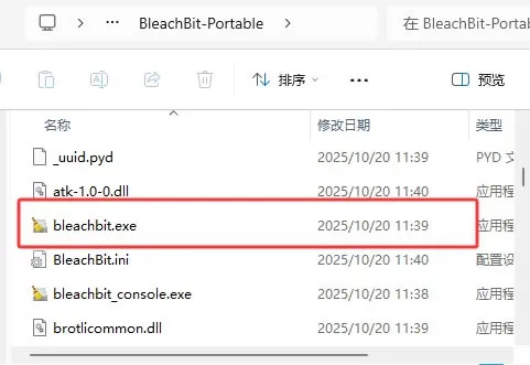 BleachBit-5.0.2-portable.zip便携版的小伙伴,解压后找到 bleachbit.exe,双击即可启动 BleachBit。