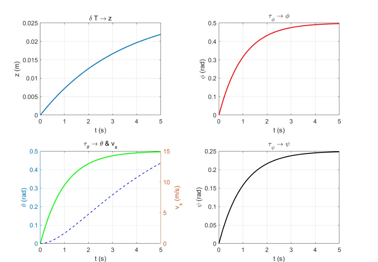 - 跟踪原理:在四旋翼无人机轨迹跟踪过程中,将期望轨迹按照离散时间步进行划分,每个时刻的期望位置、姿态等信息作为参考输入。增量 PID 控制器实时计算无人机实际状态与期望状态的误差,根据上述增量 PID 算法计算出控制量增量,通过调整四个旋翼的转速来改变无人机的受力和力矩,从而调整其运动状态,使其逐渐逼近期望轨迹。例如,当无人机的实际位置偏离期望轨迹时,增量 PID 控制器会根据位置误差计算出相应的控制量增量,增加或减少旋翼升力,使无人机回到期望轨迹上。
