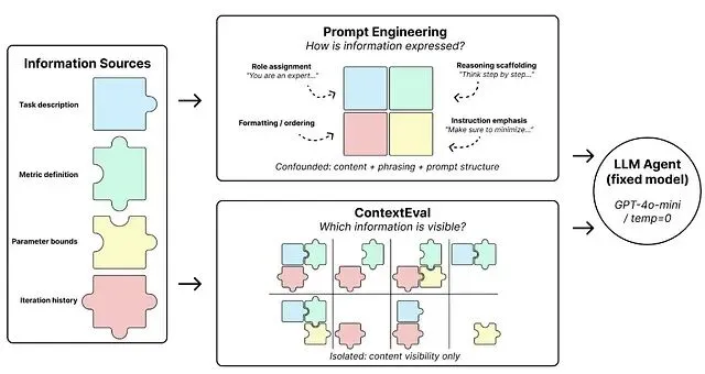 ContextEval 正是基于这一思路构建的受控评估框架。它不优化提示本身,而是系统地变更 agent 被允许看到的内容,测量这一单一因素对优化行为的影响。