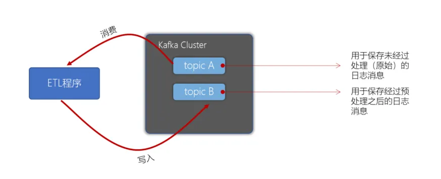 - 编写一个while死循环,在while循环中不断拉取数据,进行处理后,再写入到指定的topic