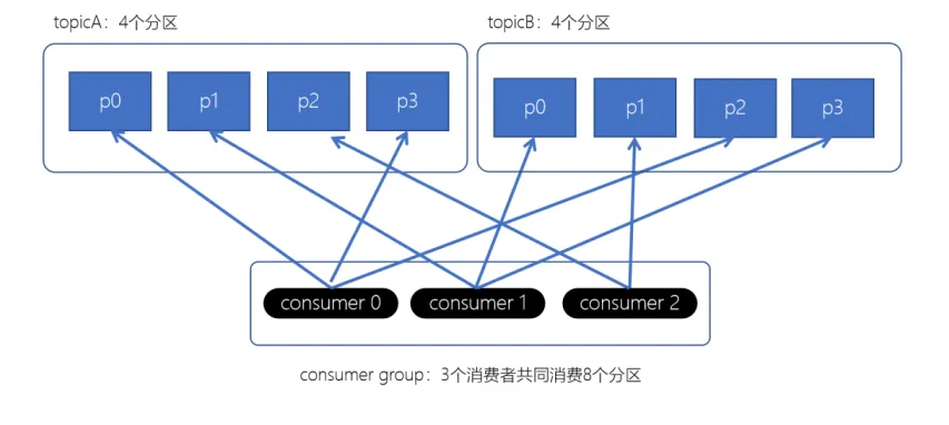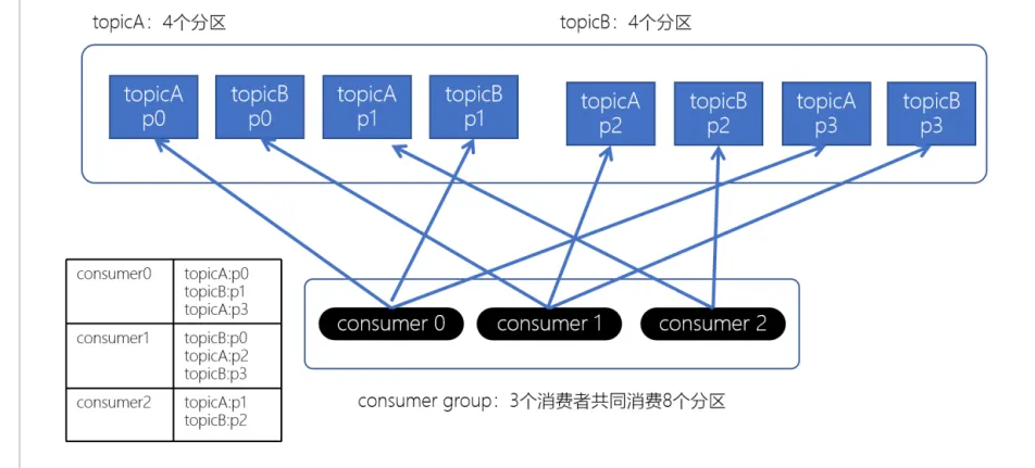 RoundRobinAssignor轮询策略是将消费组内所有消费者以及消费者所订阅的所有topic的partition按照字典序排序(topic和分区的hashcode进行排序),然后通过轮询方式逐个将分区以此分配给每个消费者。