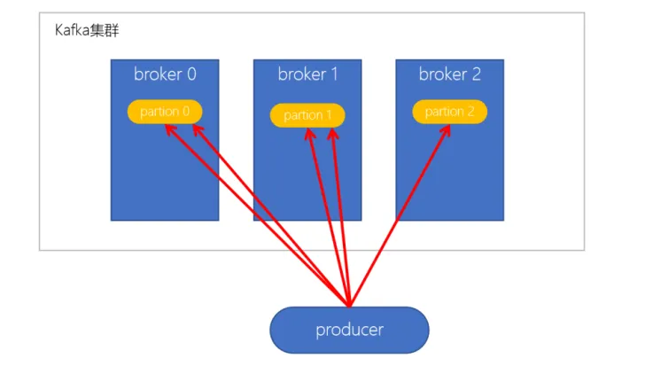 生产者写入消息到topic,Kafka将依据不同的策略将数据分配到不同的分区中