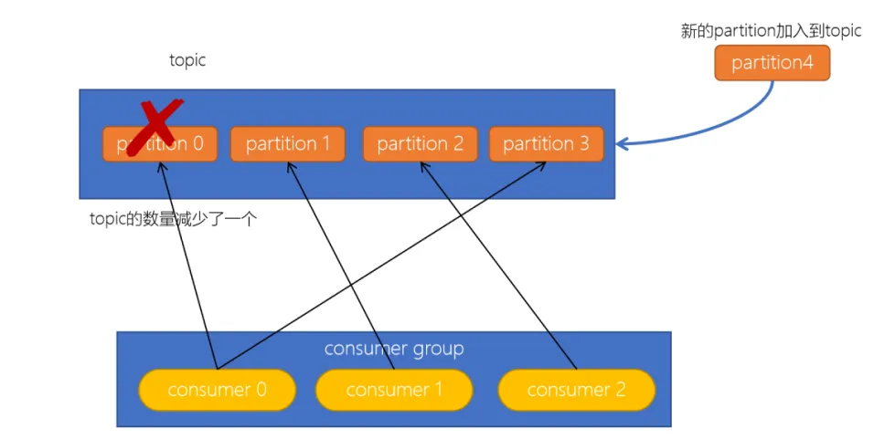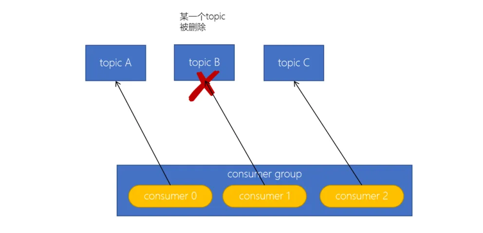 消费者可以订阅多个主题,假设当前的消费者组订阅了三个主题,但有一个主题突然被删除了,此时也需要发生再均衡。