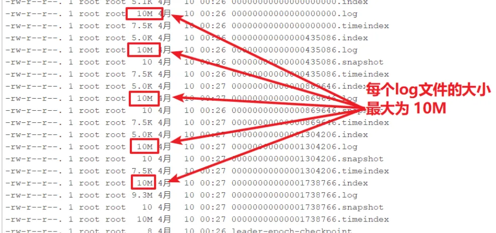 log.retention.bytes 配置的是日志文件的总大小,而不是单个的日志分段的大小,一个日志文件包含多个日志分段。