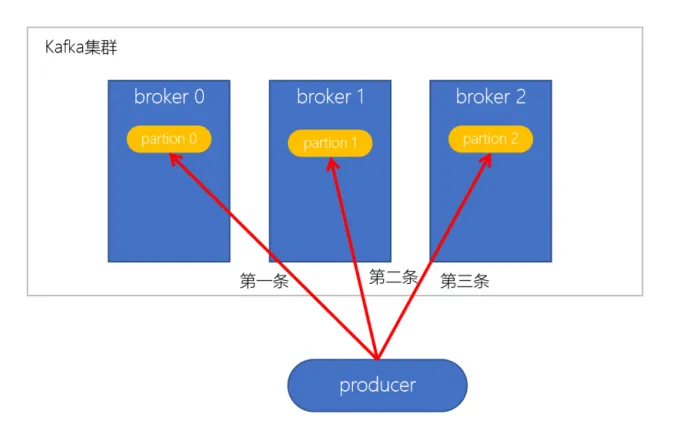 - 如果在生产消息时,key为null,则使用轮询算法均衡地分配分区