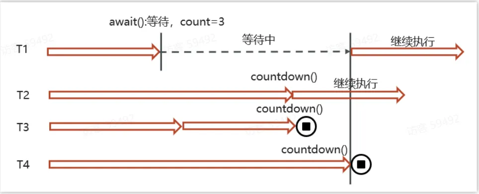 CountDownLatch(闭锁/倒计时锁)用来进行线程同步协作,等待所有线程完成倒计时(一个或者多个线程,等待其他多个线程完成某件事情之后才能执行)