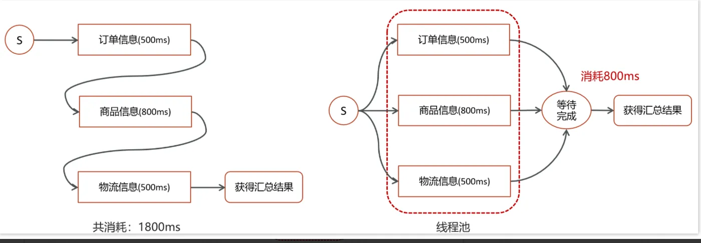 - 在实际开发的过程中,难免需要调用多个接口来汇总数据,如果所有接口(或部分接口)的没有依赖关系,就可以使用线程池+future来提升性能