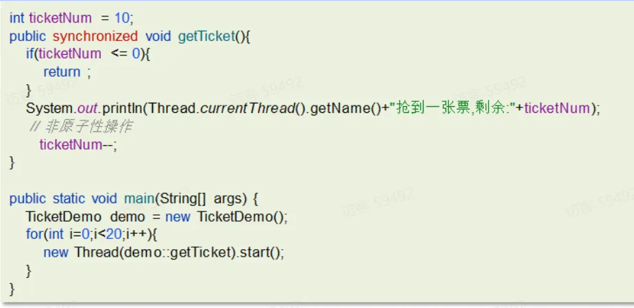 以上代码会出现超卖或者是一张票卖给同一个人,执行并不是原子性的