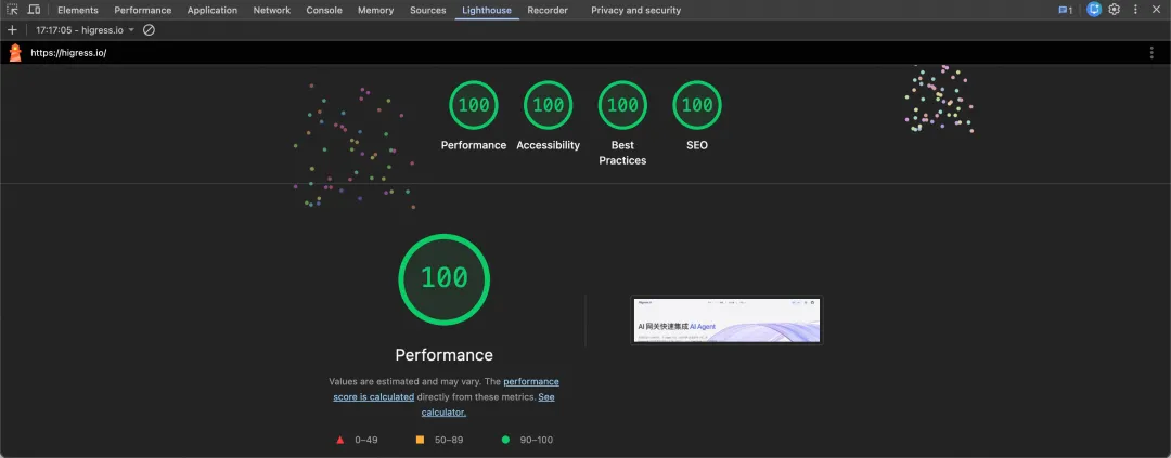 AI 会自动生成 Lighthouse 报告,识别性能问题(如未使用的 CSS、图片优化、资源加载等),并逐一执行优化,最终实现性能评分的显著提升。