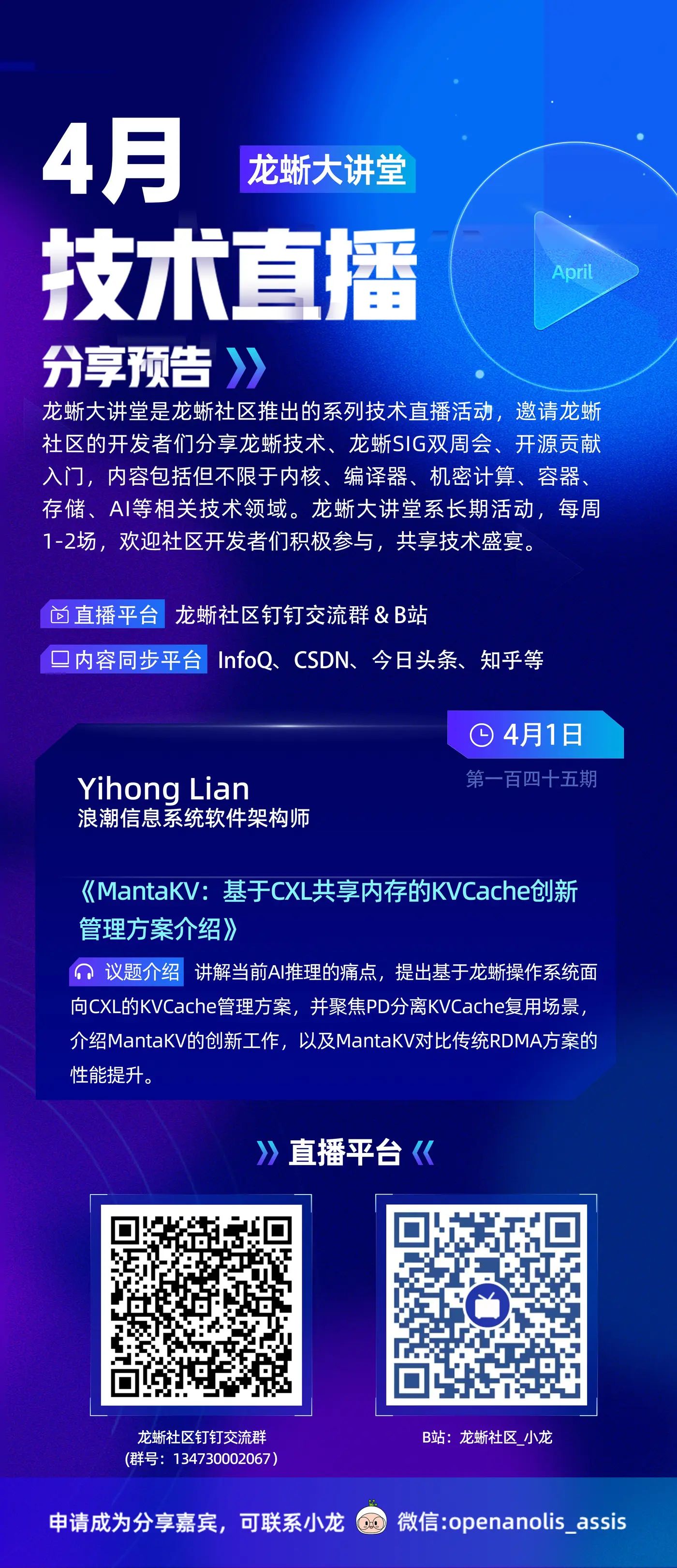 直播预告:MantaKV 如何突破 AI 推理性能瓶颈? | 龙蜥大讲堂