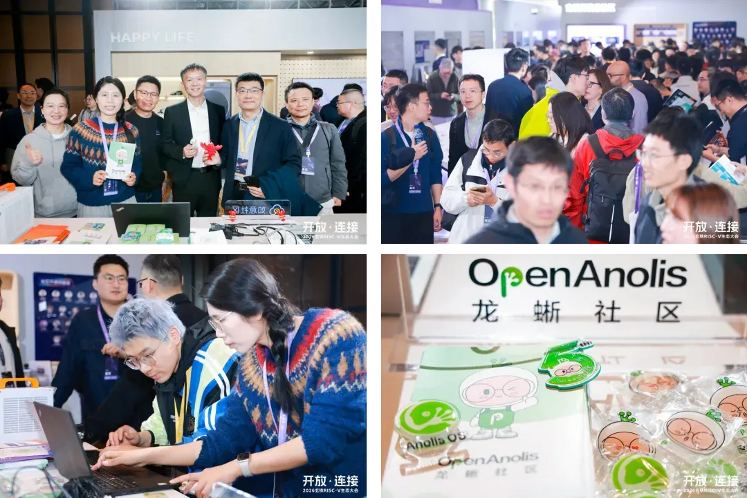 龙蜥社区也在活动现场设立了专属展台,集中展示了社区最新产品矩阵及玄铁与龙蜥的深度合作成果。展台吸引了众多参会者驻足交流,为参会者解答 RISC-V 适配、系统迁移、性能调优等技术问题,现场技术氛围热烈。图为活动现场,龙蜥社区、如意社区等社区成员与开发者现场互动和合影。