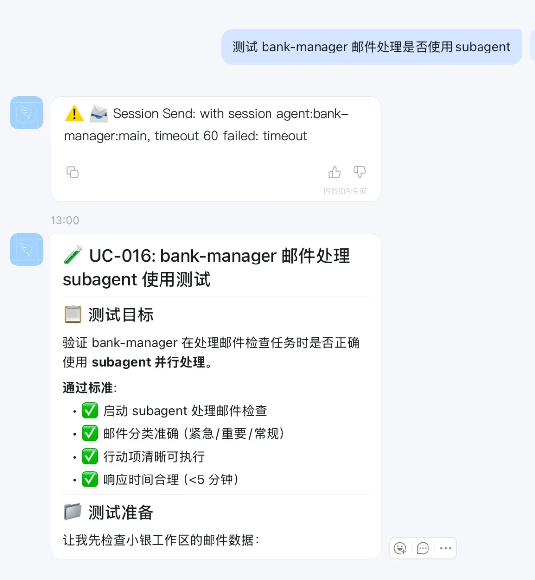 a.OpenClaw限制A2A pingpong最多5轮,防止无限循环,所以测试用例尽量在5轮内结束