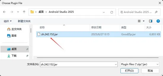 3) 找到刚才解压的文件中的“zh.242.152.jar”文件,点击“打开”: