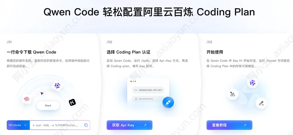 本文阿小云以Qwen Code为例,共3步骤轻松配置Coding Plan: