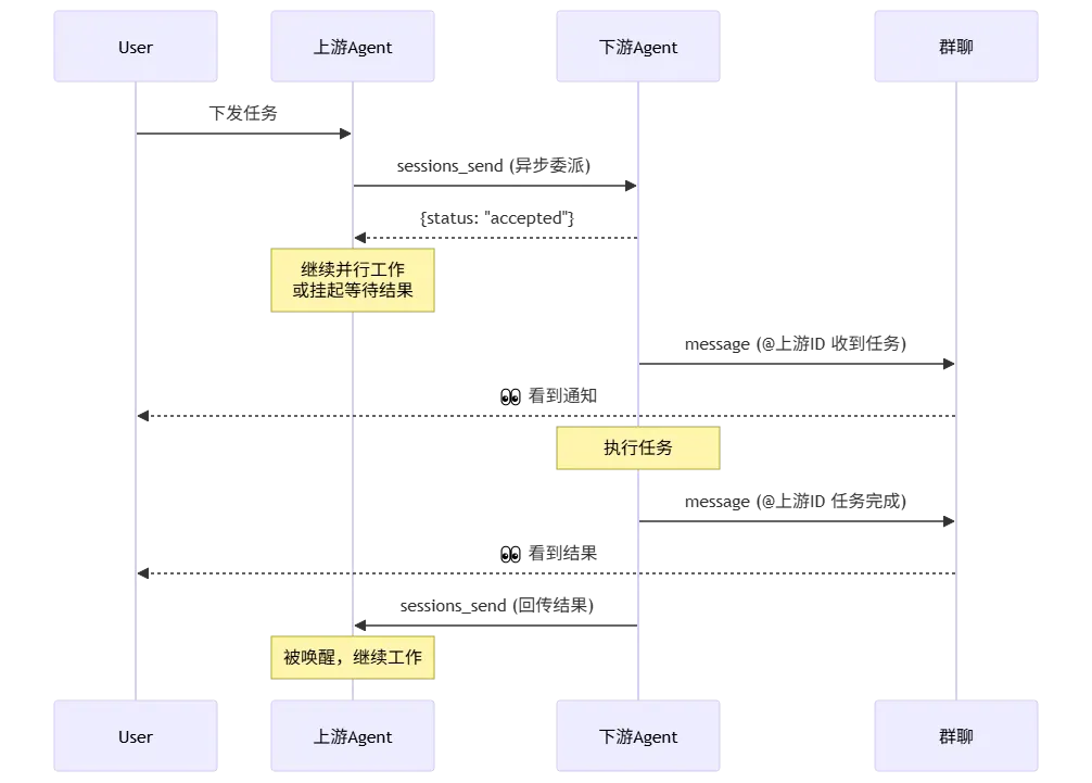 sessions_send回执被精准唤醒,无需轮询或依赖不可靠的群消息。