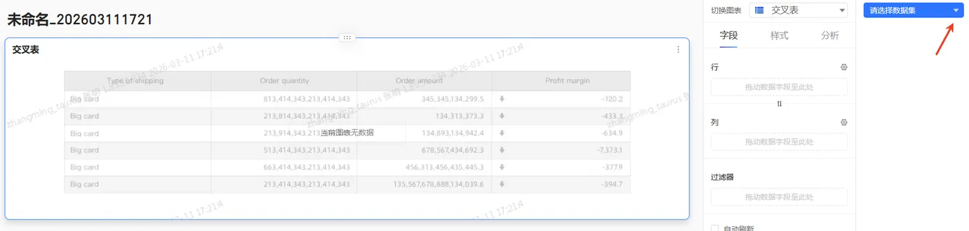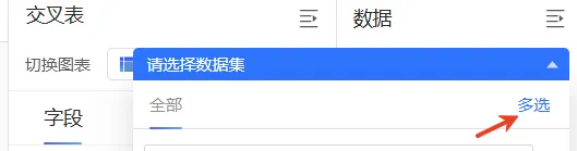 a.创建仪表板,新建交叉表,点击数据面板下数据集右侧的 图标,选择下拉面板中的多选。