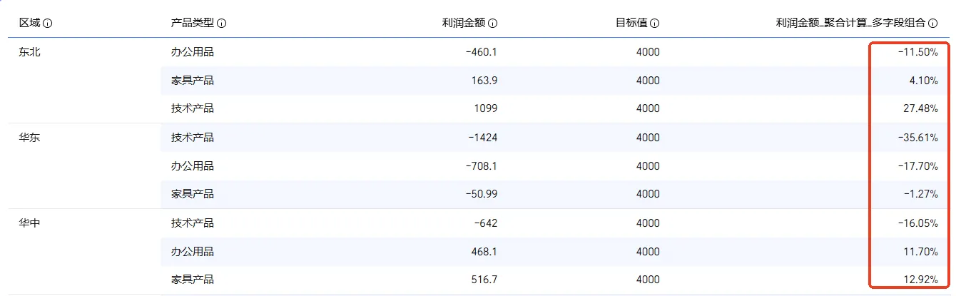 Step6. 点击更新按钮,即可在交叉表中看到各“区域-产品类型”目标完成率的数据。