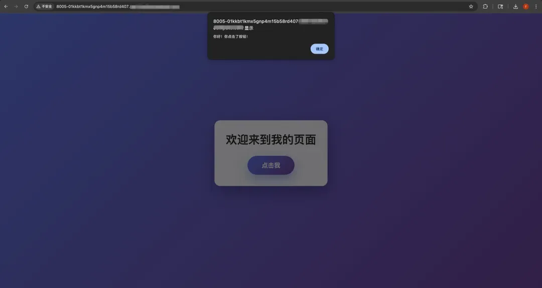 3. https://{port}-{sandbox_id}.{domain} 返回给用户;用户点击即可在浏览器中访问该沙箱内对应端口的服务,实现「生成即运行、即预览」。