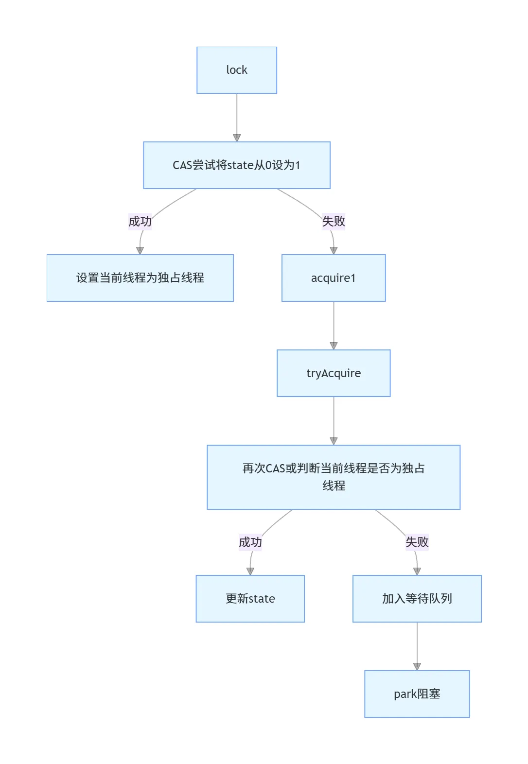 从源码层面看,ReentrantLock的NonfairSync的lock方法逻辑如下: