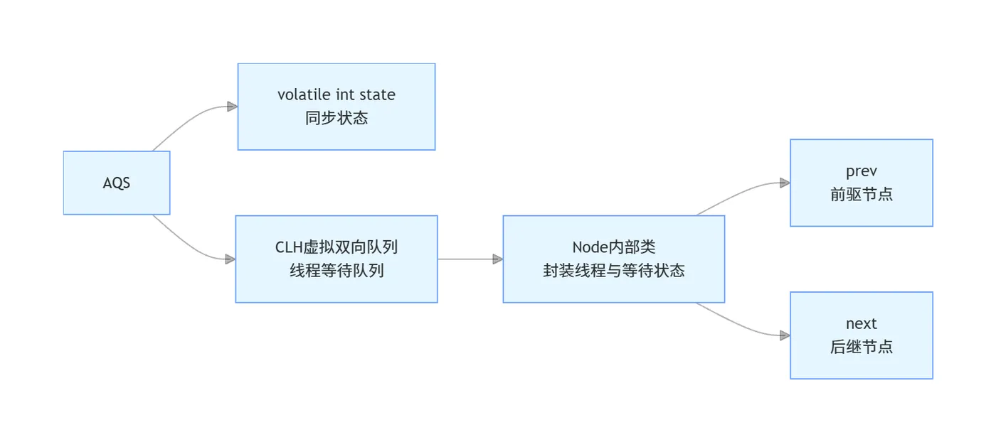AQS位于java.util.concurrent.locks包,是一个用于构建锁和同步器的抽象框架。其核心设计围绕“同步状态”和“等待队列”展开,主要包含以下三大组件: