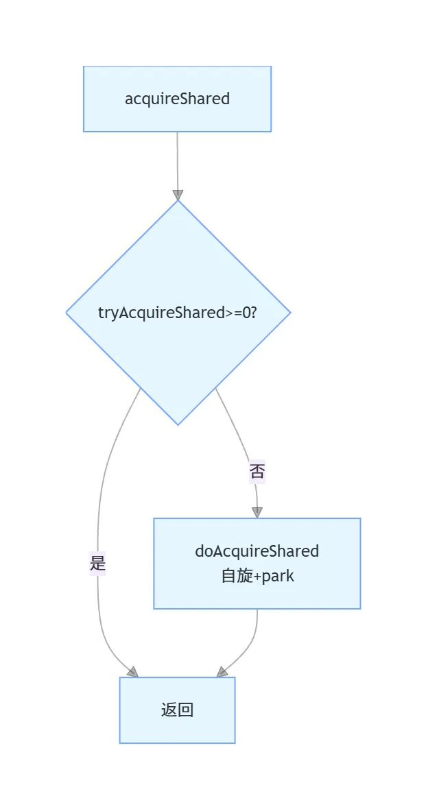 acquireShared是共享模式下获取锁的核心方法,其流程如下: