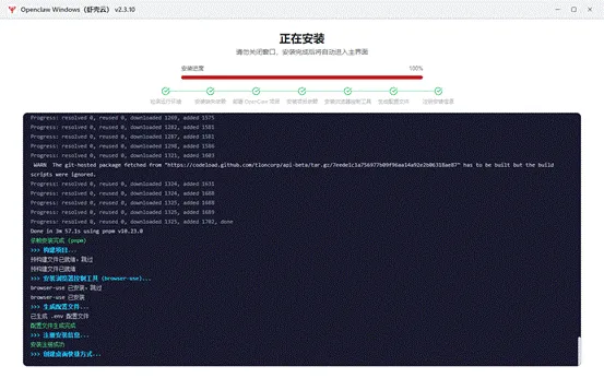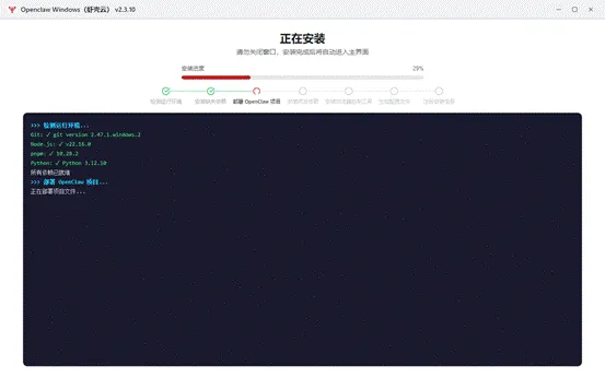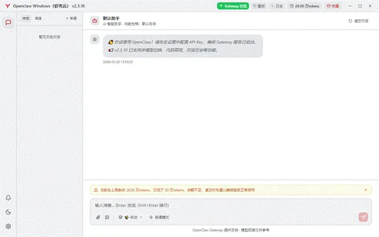 安装完成后自动启动主程序,第一次启动需要初始化 Gateway 服务,等待 1–3 分钟属于正常现象。 image.gif 编辑 image.gif 编辑编辑