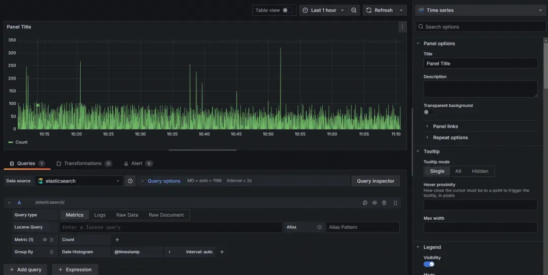 示例 1:使用 ES Lucene 的语法,在 Grafana 中绘制 QPS 趋势曲线,访问存储在 SLS 的数据