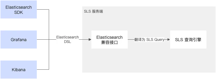SLS 提供的 Elasticsearch 兼容接口,其兼容机制是将 Elasticsearch DSL 查询翻译为日志服务的索引查询和 SQL 分析查询,并且按照 Elasticsearch 的 API 格式规范返回查询分析结果,从而实现 Elasticsearch 查询协议的兼容。