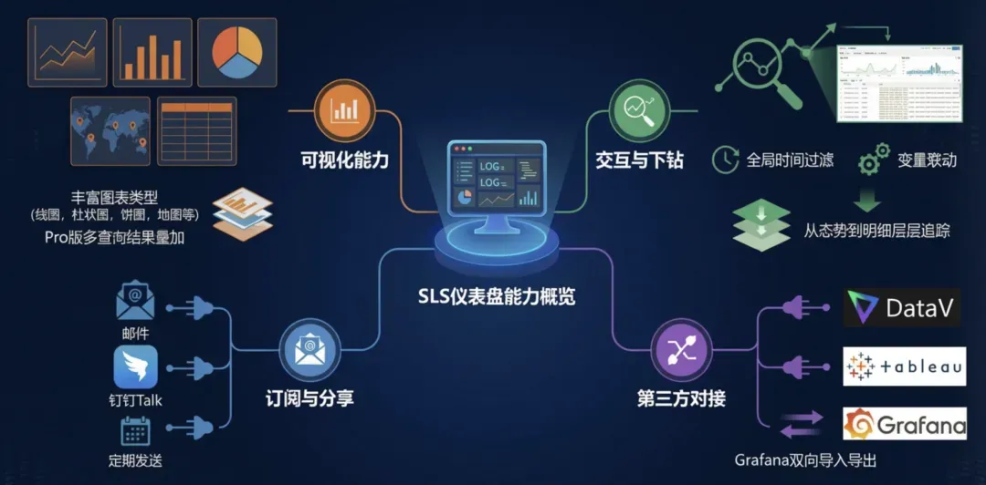 除直接成本外,SLS 可在同一平台内完成导入、加工、查询、告警与可视化闭环,减少多组件拼装带来的运维与口径分裂成本。