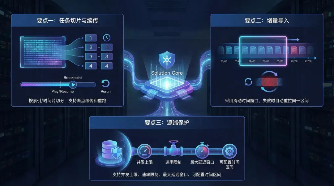 - 大量历史索引导入如果只靠“一次跑完”,失败后的恢复成本会非常高。