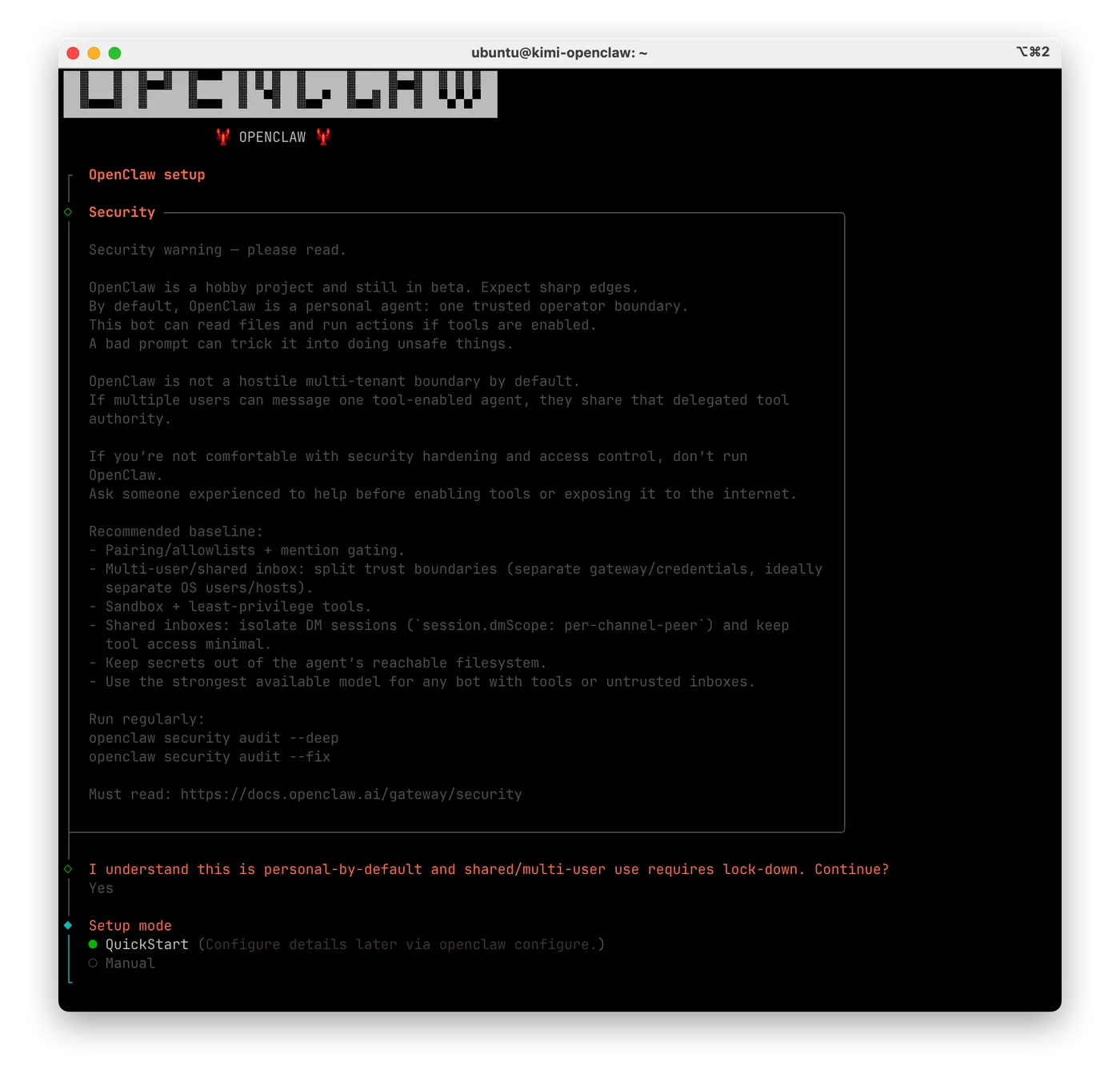 - 选择快速安装模式 QuickStart 并敲击回车确认