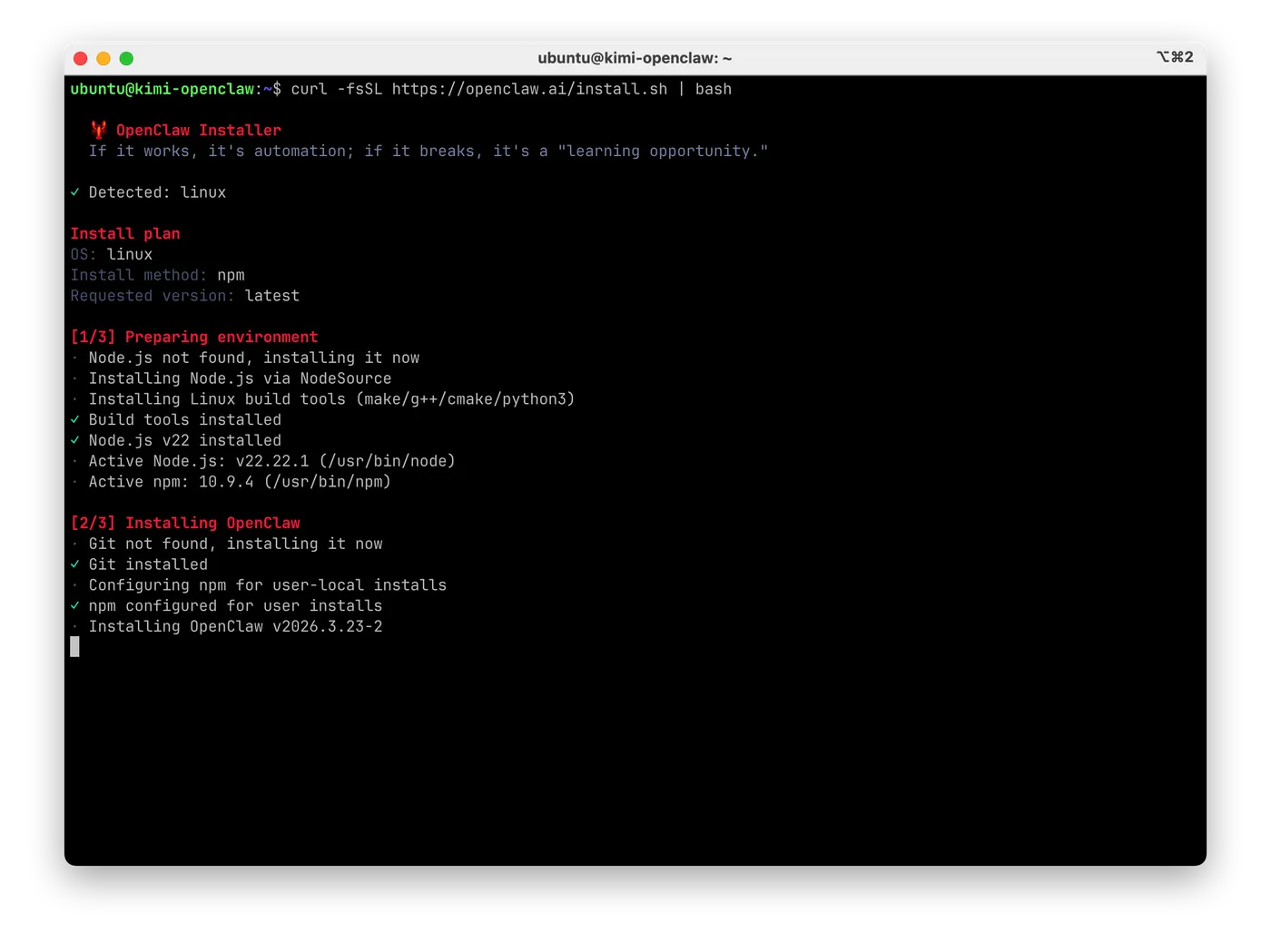 curl -fsSL https://openclaw.ai/install.sh | bash