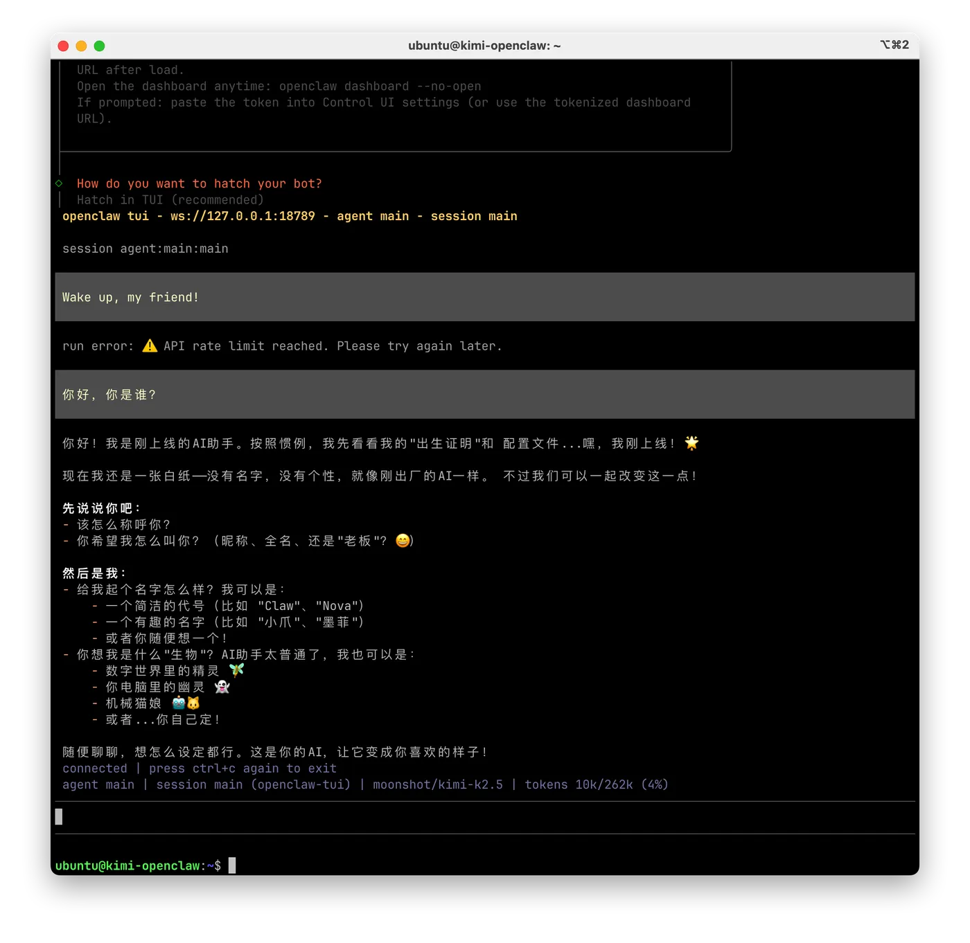 - 输入openclaw tui 可返回 tui继续聊天