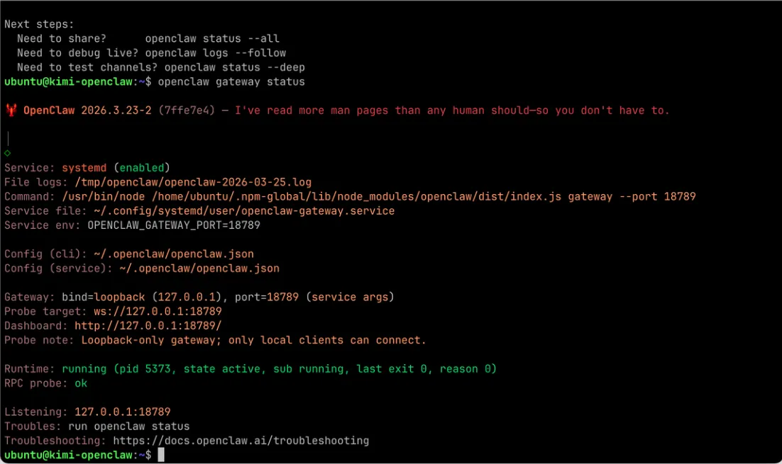 第四步:查看OpenClaw状态