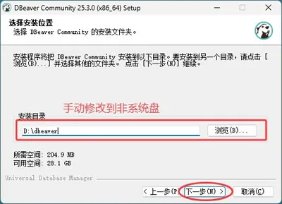 7) 默认安装到 C 盘,这里建议安装到非系统盘,比如下图中的 D 盘: