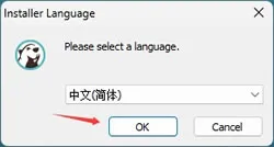 2) 默认就是简体中文,通过不需要修改,直接点 OK: