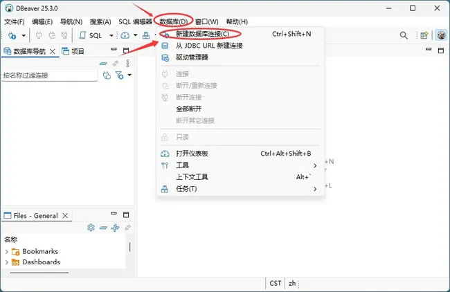 2) 点击菜单"数据库" -> "新建数据库连接"打开连接向导窗口: