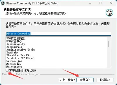 8) 默认安装完成后会自动在开始菜单中添加 DBeaver,可以勾选取消这一项。然后点击“安装”:
