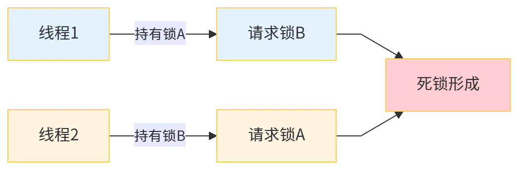- 循环等待条件:多个线程形成资源请求的环形链。