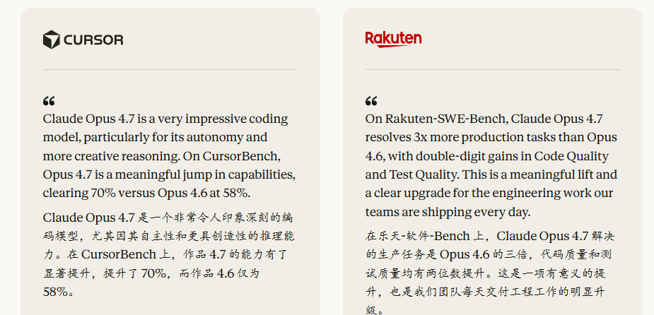 CursorBench:70%,比 Opus 4.6 的 58% 提升了 12 个百分点。